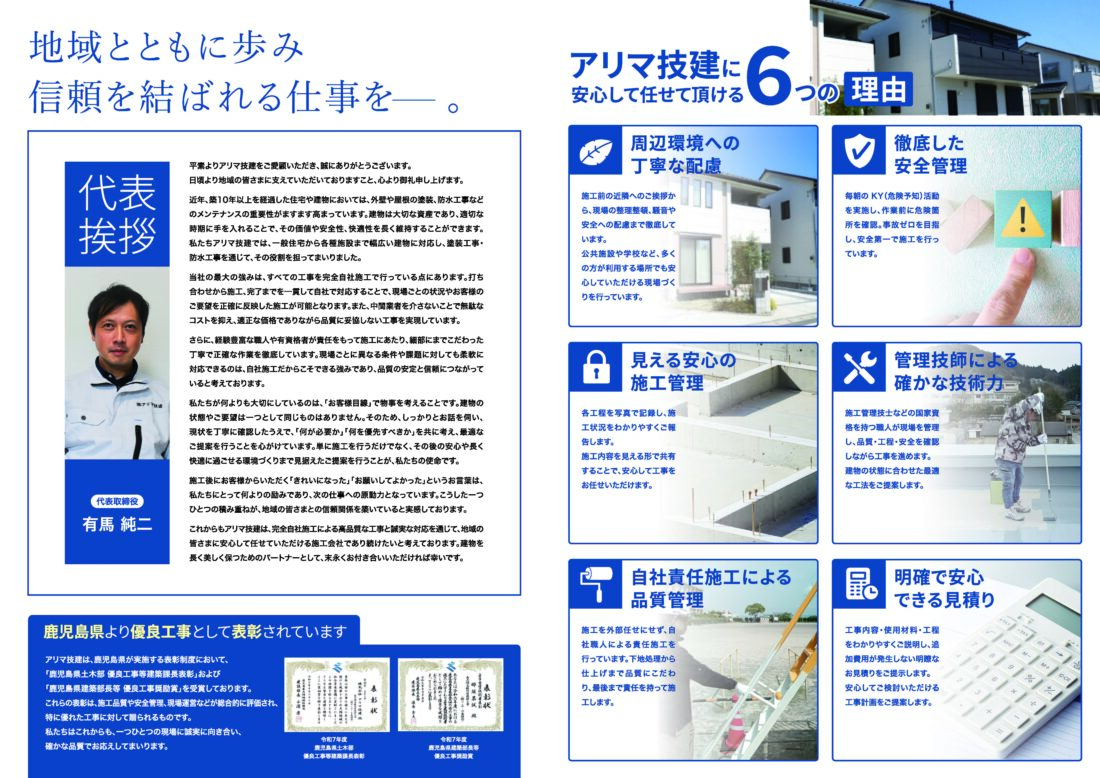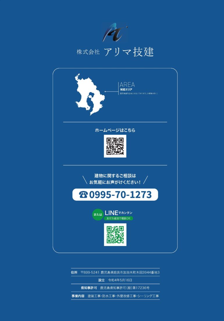 姶良市・霧島市の外壁塗装・屋根塗装・改修工事なら アリマ技建におまかせください。