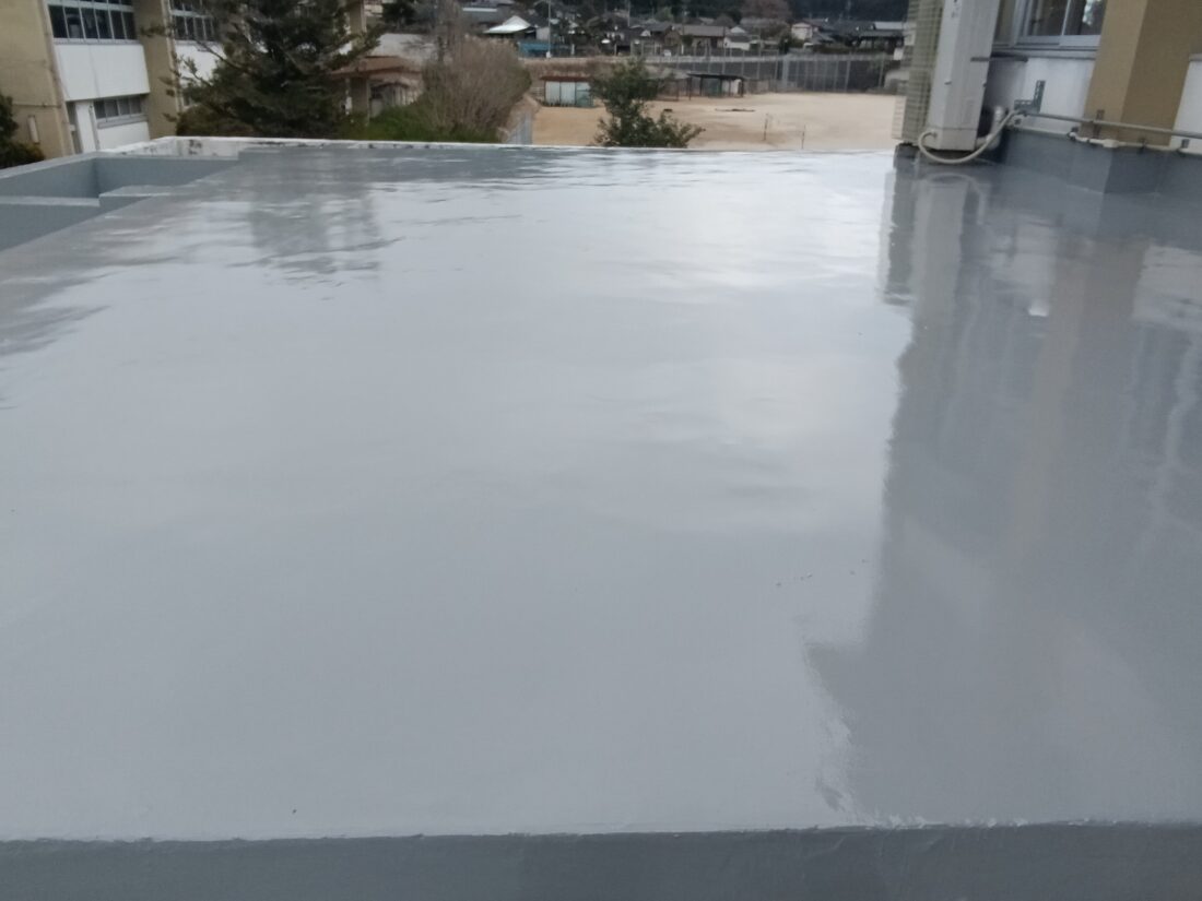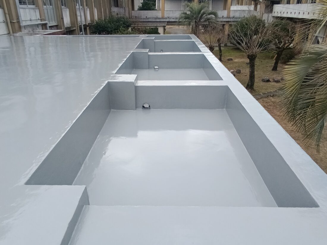 今回は塩ビシート撤去後、ウレタン塗膜防水を施工し完成いたしました。